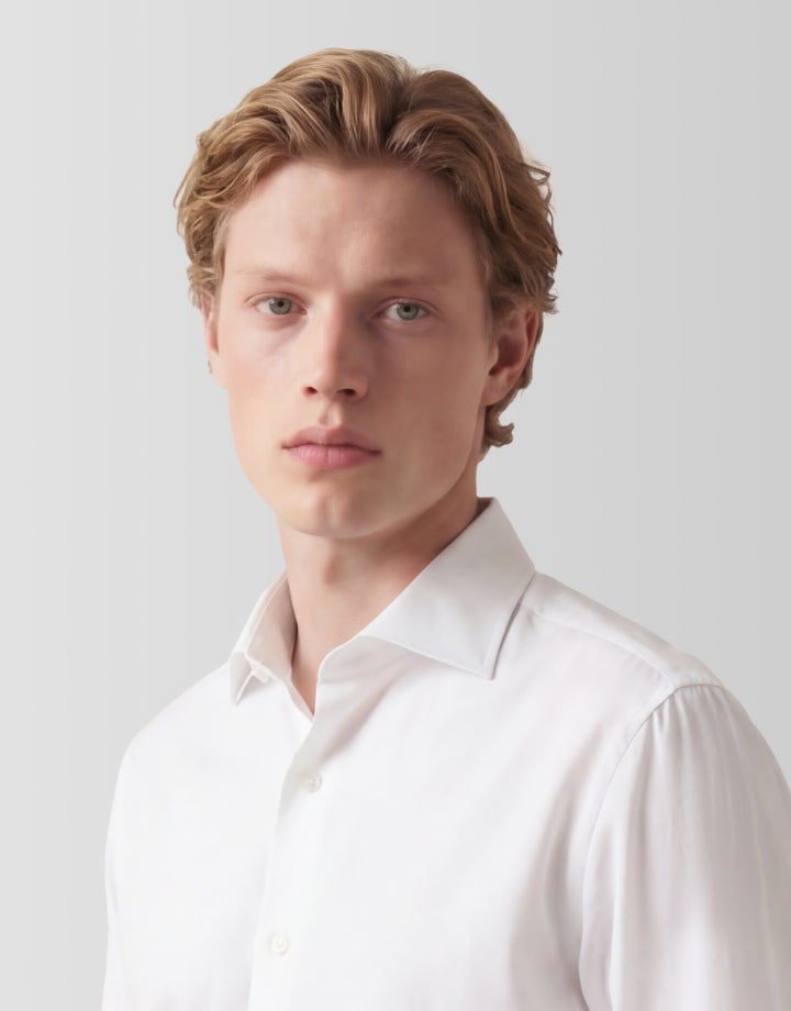 La nostra collezione NOOS garantisce che le tue camicie essenziali, bianco classico, blu e chambray, siano sempre disponibili in ogni taglia. Pronte per la spedizione entro 48 ore, tutto l'anno. Nessuna lista d'attesa, nessuna delusione. Solo la stessa qualità eccezionale e la vestibilità perfetta, ogni volta che ne hai bisogno.