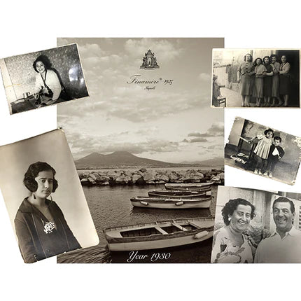 In 1925 Carolina decided to set up her first workshop in the historical centre of Naples. She sewed shirts for a selected number of customers , using the Neapolitan high fashion rules which regarding elegance laid down the law all over the world. Those rules and skills were passed down to her son Alberto and his wife Stefania who in the 1960s opened their first large workshop in San Giorgio a Cremano. Alberto is gifted with a strong business sense and supported by his wife’s experience turned the workshop into an important “high fashion” company. The combination of culture and highly sophisticated machinery makes the family company one of the most advanced ,in the forefront. In the 1990s with the arrival of the third generation, there is a real turning point for the company. Simone, Paolo, Andrea grew up among scraps of fabric, the “philosophy” of dressing well, workers sitting with bent heads because they were busy hand finishing articles of clothing on their laps. All this “dedication” has meant that the Finamore company stands out for the style and good taste of its creations and for the beauty that only articles of clothing rich in detail like Finamore products are able to give. Today “Carolina’s world“ has widened greatly and the Finamore creations have become an important international brand name distributed in the most prestigious and exclusive multi-brand Boutiques and department stores all over the world.” Total look” collections , made up of completely “destrutturate” jackets, shirts, ties and accessories are also sold.